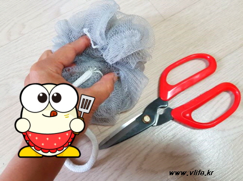 샤워 타올, 샤워 볼 활용 주방 수세미 만들기