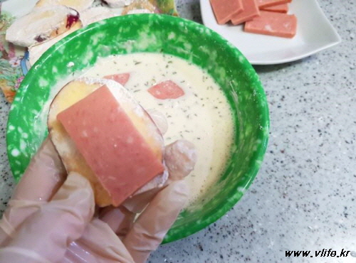 햄 어부바한 고구마를 퐁당 담갔다가