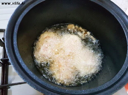 기름에 맛있게 튀겨요.