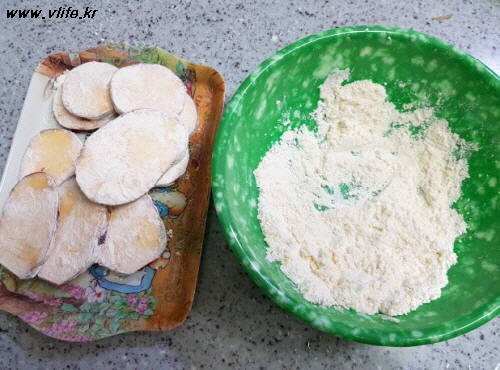 튀김가루 묻혀 가루 탈탈 털고