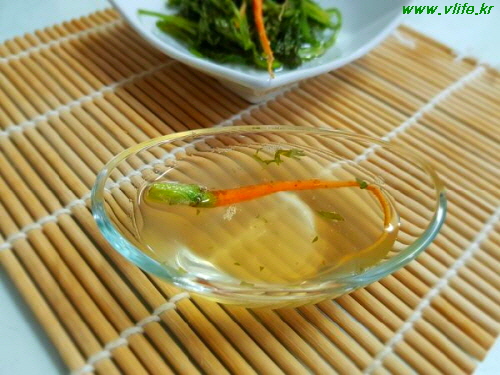 당근 잎 한 층 깔고 설탕 뿌리기를 반복하다가 맨 위에는 좀 넉넉한 양의 설탕으로 덮어 그늘지고 서늘한 곳에 1주일 두었다가 위아래 뒤섞어 1개월 두었다가 즙을 걸러 냉장고에 3개월 두었다가 각종 요리에 활용해요.