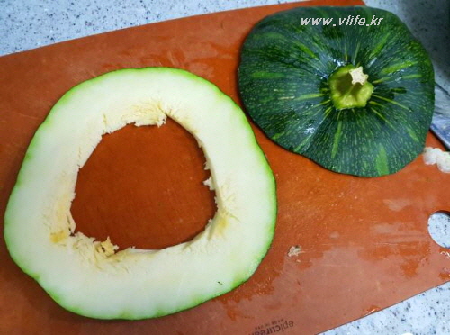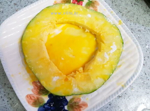 준비물; 큰 둥근 호박, 달걀, 밀가루, 소금, 식초, 식용유