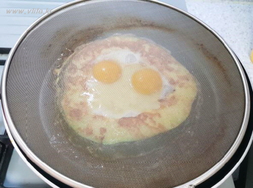 두께 때문에 익는 시간이 필요해요, 뚜껑 덮어 어느 정도 익힌 뒤 달걀을 넣어요.