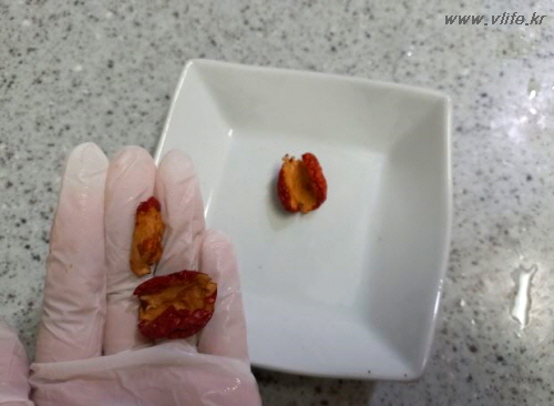 말린 대추는 미지근한 물(혹은 설탕물)에 불려 두면 주름 사이에 끼어 있는 불순물을 깨끗이 없앨 수 있어요.