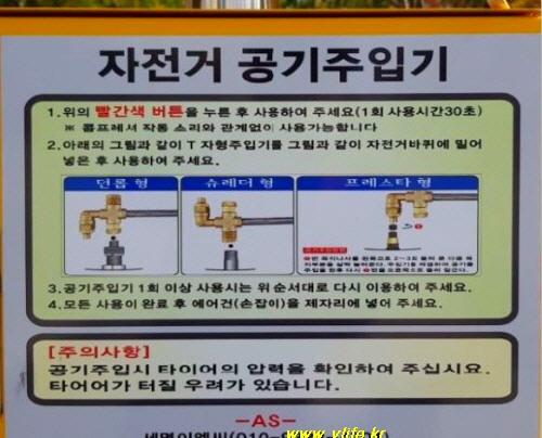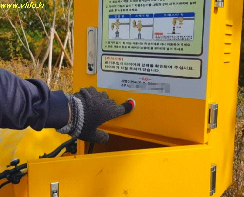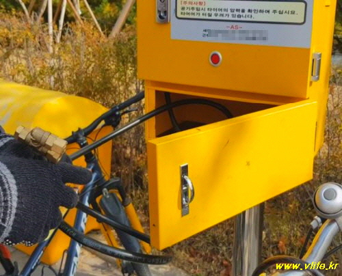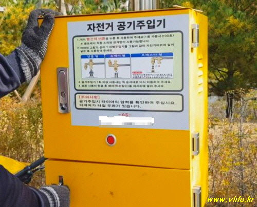 편리하고 고마운 공용 자전거 공기 주입기, 사용법도 아주 쉬워요.