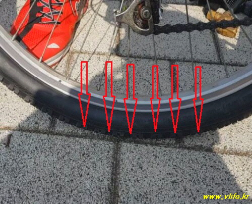 중간중간 타이어 눌러 가며 압을 확인하면서 넣어요.