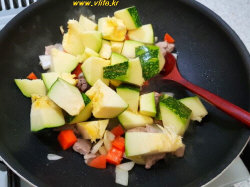 호박 넣고 볶다가(기름 조금 추가했어요)