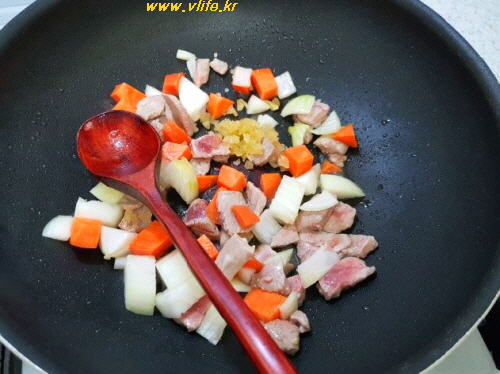 마늘, 양파, 당근 넣고 볶다가