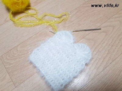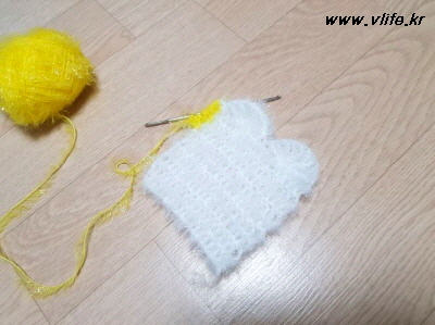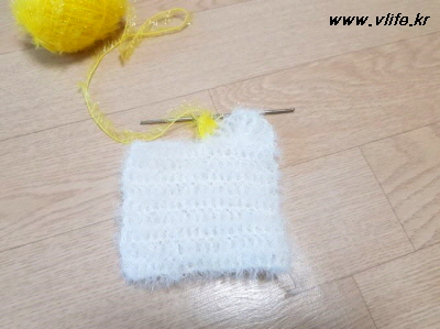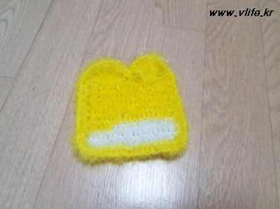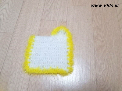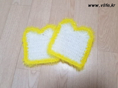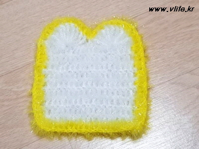 뜨개실 색이 진하고 옅은 갈색이었으면 훨씬 식빵 같은 느낌이 났을 것 같은데, 몇 군데 다녀 봐도 없어서 하얀색과 노란색으로 떴어요.