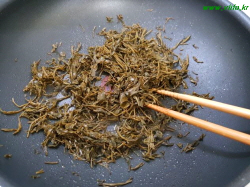 우려 마시고 남은 녹차 잎을 모아 반찬을 만들었어요.