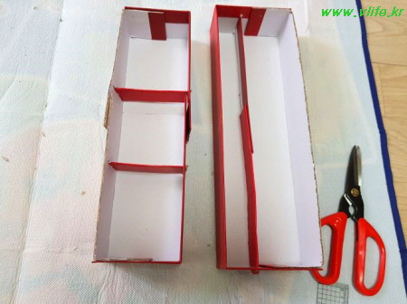이렇게 겹쳐 끼우고 칸막이는 역시 옆에 창을 만들어 끼웠어요.