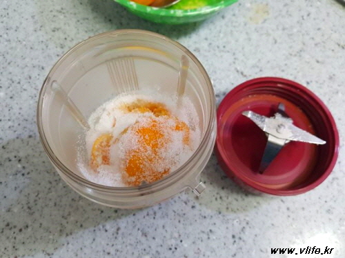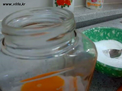 식초 물에 10여분 담갔다가 헹구기까지는 두 가지 귤 청 모두 같아요.