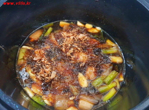 *대파와 마늘 얼린 거 있어 사용, 생강도 있으면 넣고 다시마물 사용하면 더 좋아요.