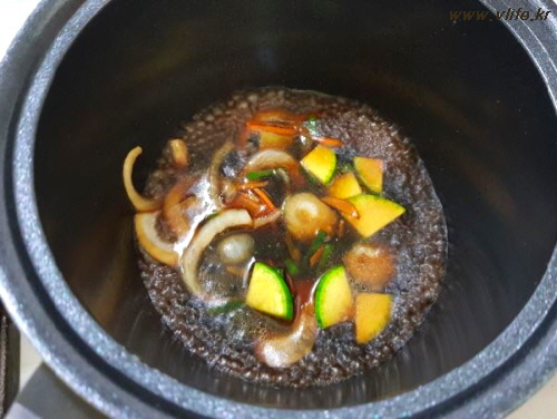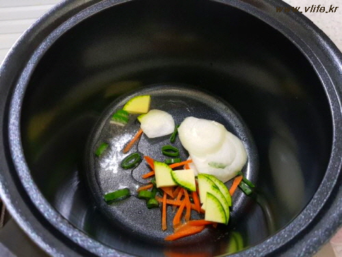 기름에 파, 당근, 호박, 양파 잠깐 볶다가