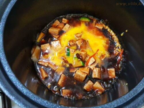 두부 넣어 끓이다가 전분에 물 섞은 전분물을 가장자리 따라 조르륵 넣어 잠깐 뒤적이다가