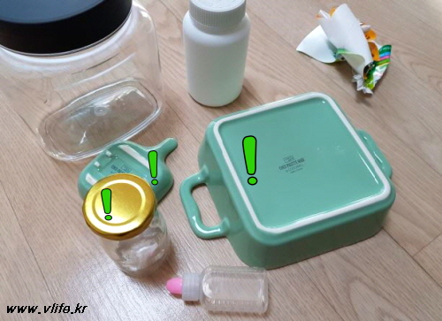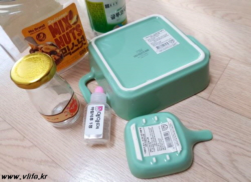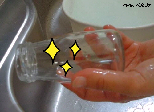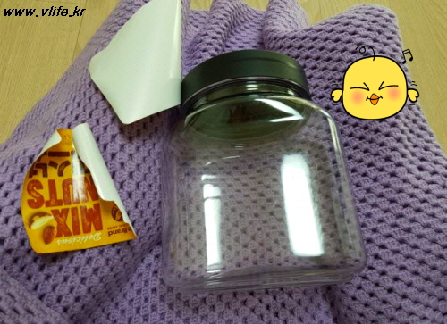 이 유리병도 잘 떼어지다가 마지막에 아주 일부분에 접착 성분이 남았어요.