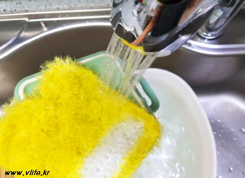 이럴 때는 뜨거운 물에 적셔 불려서 수세미로 살살 밀어주면 완벽히 제거돼요.