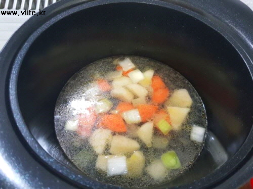 카레 가루 넣어 뭉치지 않게 잘 풀어 한소끔 끓이면 끝