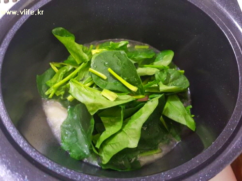 시금치 넣어 한 번 휘젓고