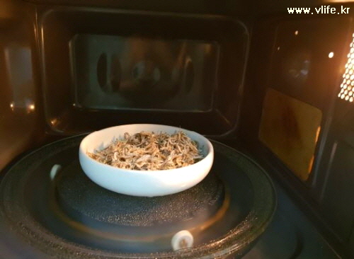 냉동실에 있던 멸치는 전자레인지에 30초 돌려 비린내 날렸어요.