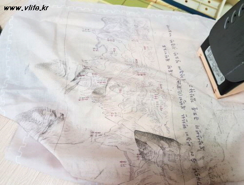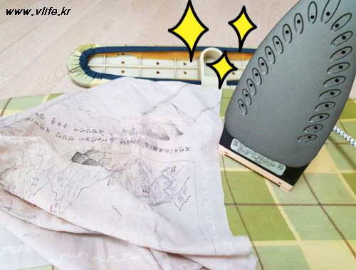 다리미 온도 올린 상태로 반복해서 손수건에 대고 문질문질