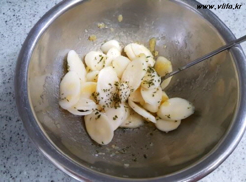 준비물; 떡국 떡, 마늘, 버터, 파슬리 가루