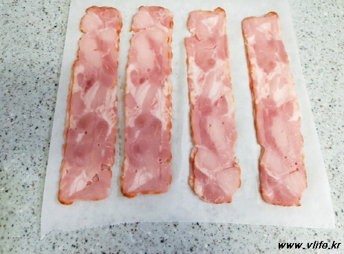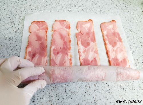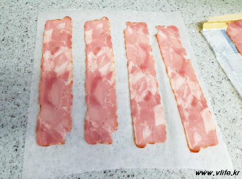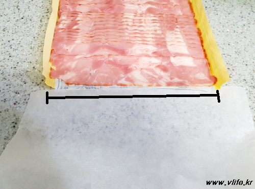 유산지를 베이컨 길이보다 조금 더 여유 있게 잘라서