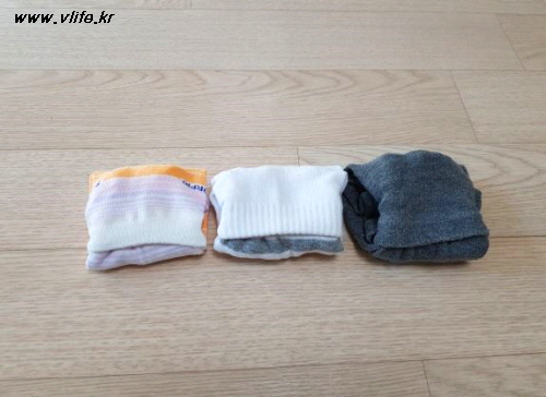 세워서 나란히 나란히 두면 하나씩 꺼내 신기도 좋고 양말 서랍이 아주 깔끔해집니다.