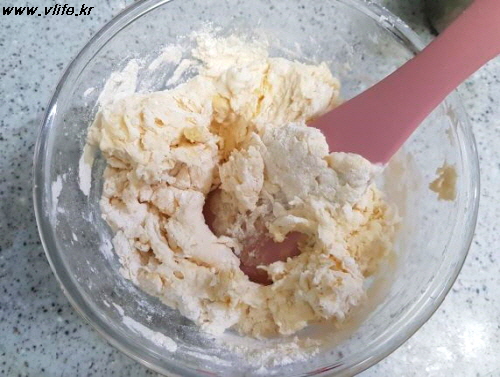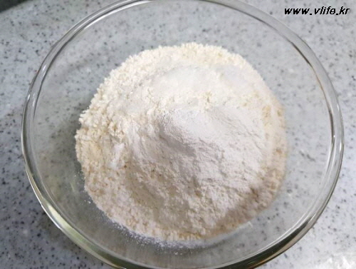 밀가루+소금+베이킹파우더 섞고
