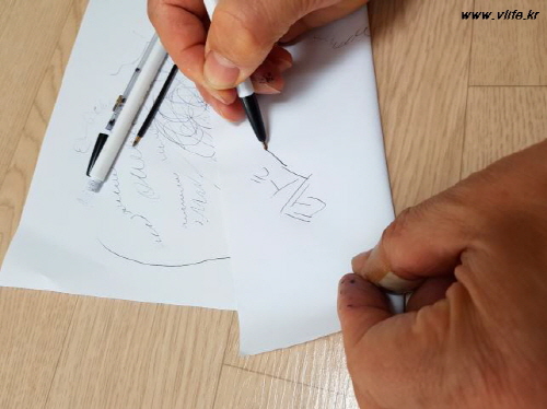 볼펜심을 빼기전 찍었는데 초점이 흐리긴 하지만 확대해보니 확실히 보여요. 이게 1번