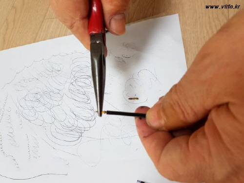 그래서 다 쓴 볼펜의 볼펜심과 교체했어요.
