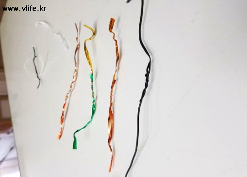 짧은 건 두 개를 약간 겹쳐서 서로 반대 방향으로 꼬아 연결해요.