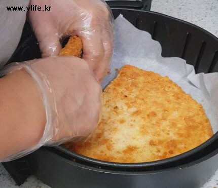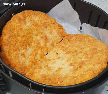 180~190도 예열한 에어프라이어에 4 등분한 돈가스 넣고 20분 조리 후 꺼내래요.