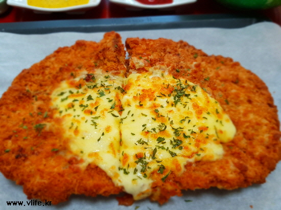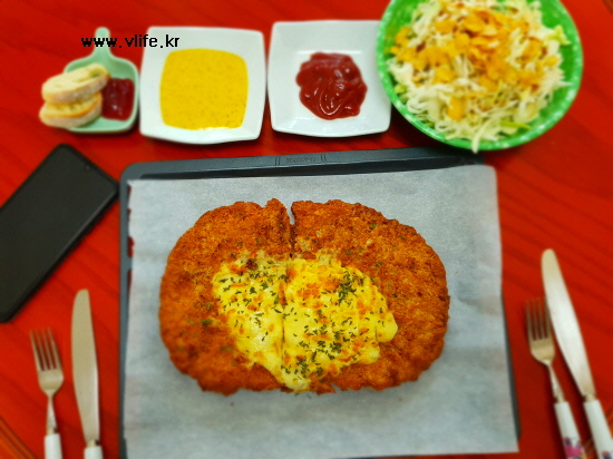 치즈 뿌려 먹으면 치즈 대왕 돈가스가 됩니다.