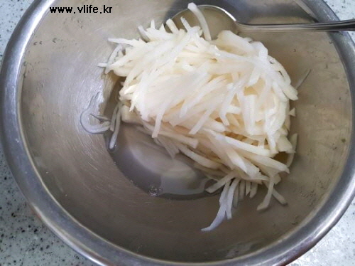 이런 식으로 썰면 무채의 길이가 어느 정도 비슷해져요.