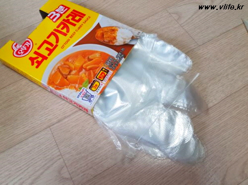 카레 상자에 들어갈 만큼 일회용 장갑을 빼서