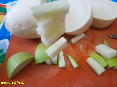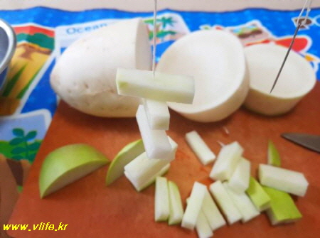 너무 굵게 썰면 말리는 시간이 오래 걸려요.