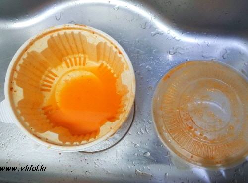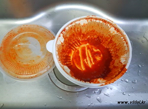 그런데 대부분의 배달용기 특성상 쉽게 잘 안 닦여요.