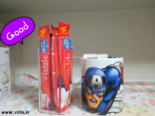 블랙커피 담아 주방 수납장에 넣어 두었어요.