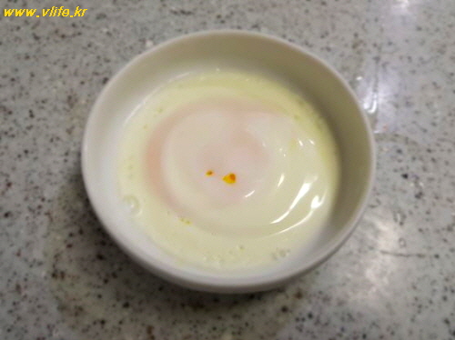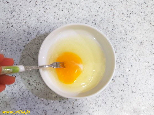 달걀 깨뜨려 넣고 흰자, 노른자에 구멍 몇 개 뿅뿅 (이번엔 좀 많이 찔렀더니 모양이 흐트러졌어요)
