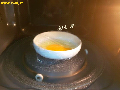 30초 돌리고 달걀 상태 봐 가며 몇초씩 더 돌려요.