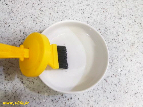 전자레인지에 사용 가능한 접시에 기름을 조금만 발라요.