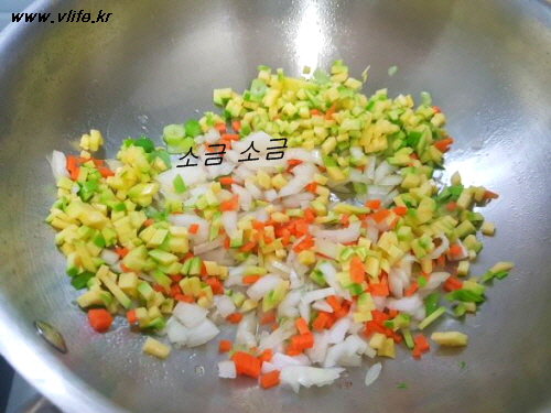 채소 넣고 볶다가 소금 조금 넣어 볶다가