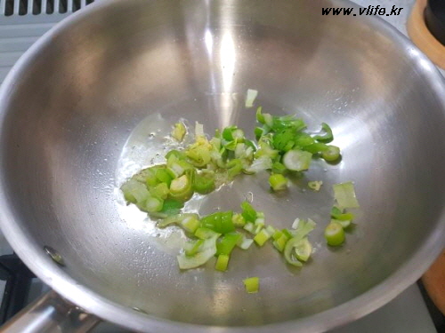 기름 두르고 파 볶아 향이 올라오면