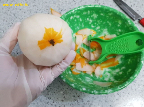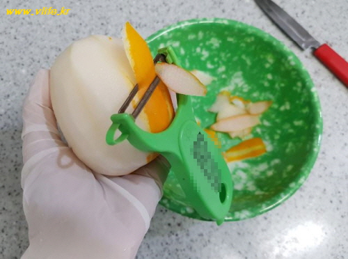 저 같은 경우에는 칼을 사용했을 때 보다 껍질이 얇게 벗겨지고 속도도 빨라져요.