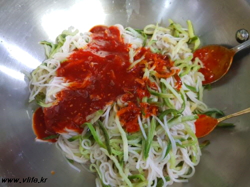 만들어 둔 초고추장 넣고 비비다가