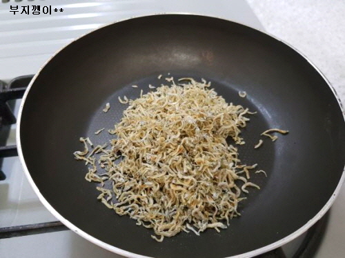 마른 팬에서 멸치 잠깐 볶아 비린내 날려 버리고