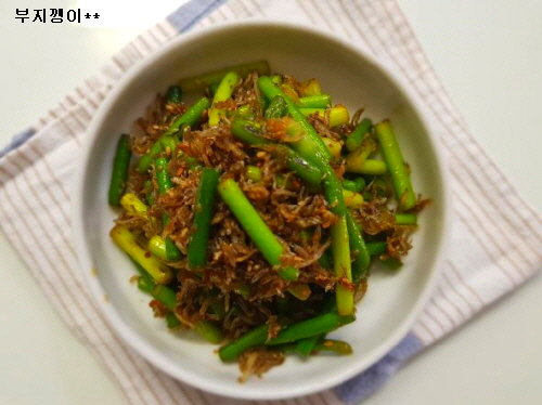 마늘쫑을 넣어서 파, 마늘 등의 다른 향 채소를 넣지 않아도 돼요.