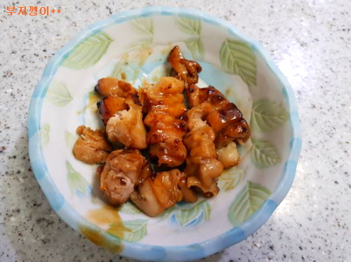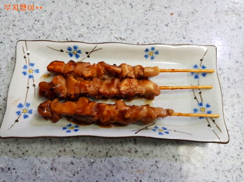 꼬치 닭 한 조각 넣고