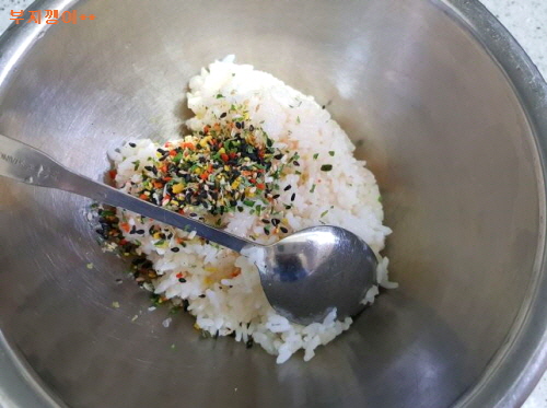 밥에 초밥 재료 두 가지 넣고 비빈 뒤